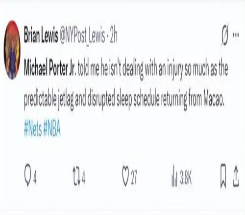 小波特也談到自己在NBA中國(guó)賽發(fā)揮不理想的原因,飛到中國(guó)后一直都在倒時(shí)差,自己還沒(méi)將時(shí)差倒過(guò)來(lái)就得登場(chǎng),回國(guó)后時(shí)差倒回來(lái)狀態(tài)自然就恢復(fù)了。