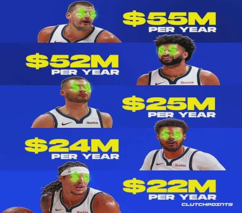 至此,掘金的新賽季先發(fā)五人陣容已經(jīng)出爐,也正是隊內(nèi)年薪最高的五人:約基奇(5500萬)、穆雷(5200萬)、布勞恩(2500萬)、約翰遜(2400萬)和戈登(2200萬)。