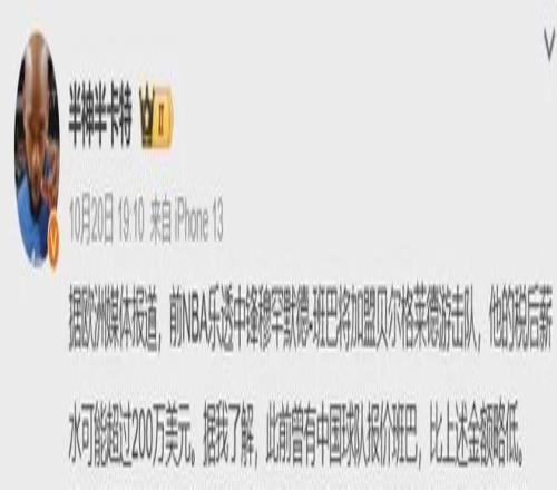 據(jù)國(guó)內(nèi)媒體人透露,有CBA球隊(duì)同樣有意簽下班巴,但報(bào)價(jià)比貝爾格萊德游擊隊(duì)提供的薪資低一點(diǎn)。