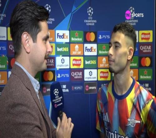 本賽季歐冠第3輪小組賽,阿森納主場4-0戰(zhàn)勝馬競。阿森納球員馬丁內(nèi)利接受了賽后采訪。
