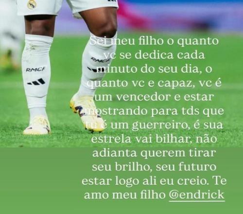 恩德里克的父親道格拉斯-恩德里克在社交媒體寫(xiě)道:“我知道你,我的兒子,你每天都在專注于足球,你非常優(yōu)秀。你是一個(gè)贏家,你是一位戰(zhàn)士。你的星光將會(huì)閃耀,你的未來(lái)不可限量。我愛(ài)你。”