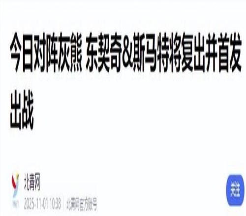 北青網(wǎng)(今日對(duì)陣灰熊 東契奇&斯馬特將復(fù)出并首發(fā)出戰(zhàn)2025.11.01)