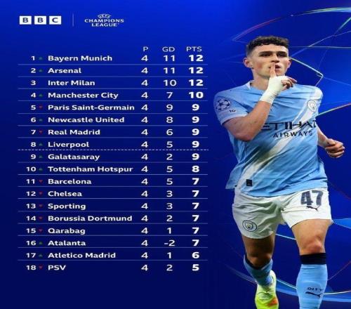 北京時(shí)間11月6日,2025-26賽季歐冠聯(lián)賽階段第4輪結(jié)束全部18場(chǎng)較量。本輪過后,積分榜再次發(fā)生巨大變化。全勝的隊(duì)伍僅剩下國米、拜仁和阿森納。