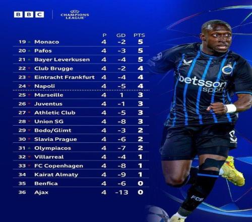 目前4輪戰(zhàn)罷,仍有2隊(duì)至今1分未得。還是兩支前賽會(huì)冠軍,穆帥執(zhí)教的本菲卡主場(chǎng)0-1不敵勒沃庫森,阿賈克斯則是0-3潰敗給加拉塔薩雷,4輪0分后,兩隊(duì)晉級(jí)附加賽的希望相當(dāng)渺茫。