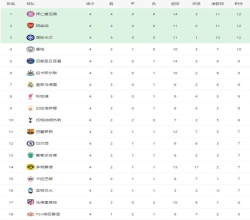 北京時(shí)間11月6日凌晨,歐冠聯(lián)賽階段第4輪第二個(gè)比賽日,總共9場(chǎng),曼城主場(chǎng)4-1多特,巴薩客場(chǎng)3-3布魯日,國(guó)米主場(chǎng)2-1凱拉特,切爾西客場(chǎng)2-2卡拉巴赫,帕福斯主場(chǎng)1-0比利亞雷亞爾,本菲卡主場(chǎng)0-1勒沃庫(kù)森,馬賽主場(chǎng)0-1亞特蘭大,紐卡斯?fàn)栔鲌?chǎng)2-0畢爾巴鄂,阿賈克斯主場(chǎng)0-3加拉塔薩雷,接下來(lái)看看每場(chǎng)比賽的簡(jiǎn)單綜述。